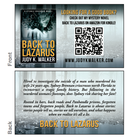 In the meantime, but not until after fun with Microsoft, I remembered that my cover designer’s company also does author swag. Their prices seemed very reasonable, so we decided to give it a go, with the same parameters: simple, legible, cover and QR code, blurb. This is what Robin Ludwig Cover Designs came up with. It’s okay, you won’t hurt Team Walker’s feelings—not only were we not in the same ballpark with the pros, we weren’t even in the same sport. They were doing the World Cup in Brazil while we were taking a YMCA seniors class in curling in Poughkeepsie. Robin’s team did an amazing job, and probably in less time that it took us to come up with our design. Plus even with crazy shipping costs (damn you, Hawaii Tax!), the price per business card was less than half for the professionally designed cards versus DIY.