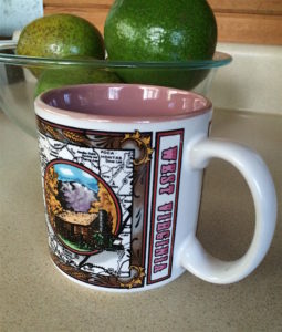 Like many writers, I sometimes have little tricks to get my brain in gear and make sure it knows where we’re headed. For the Dead Hollow books, I’ve dusted off an old mug I found in a Salvation Army shop while looking at used books. I cannot imagine how a West Virginia tourist mug made it all the way across the Pacific to Hilo, Hawaii, intact. But since Dead Hollow is a fictional Appalachian place and the fall cabin on the mug could have been lifted from Prodigal’s pages (not to mention I’m incapable of writing or otherwise functioning without morning coffee), it seemed like a good fit.